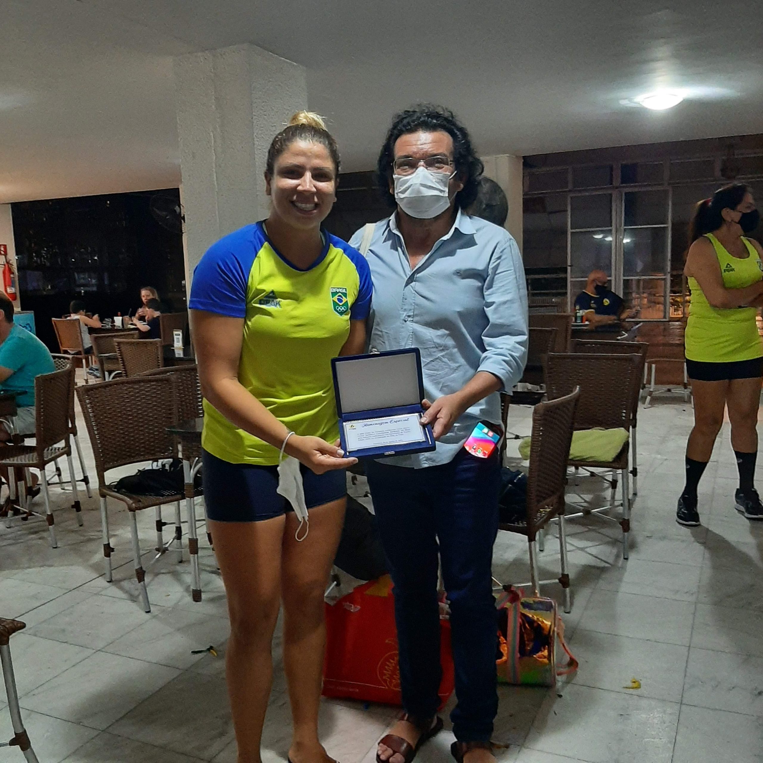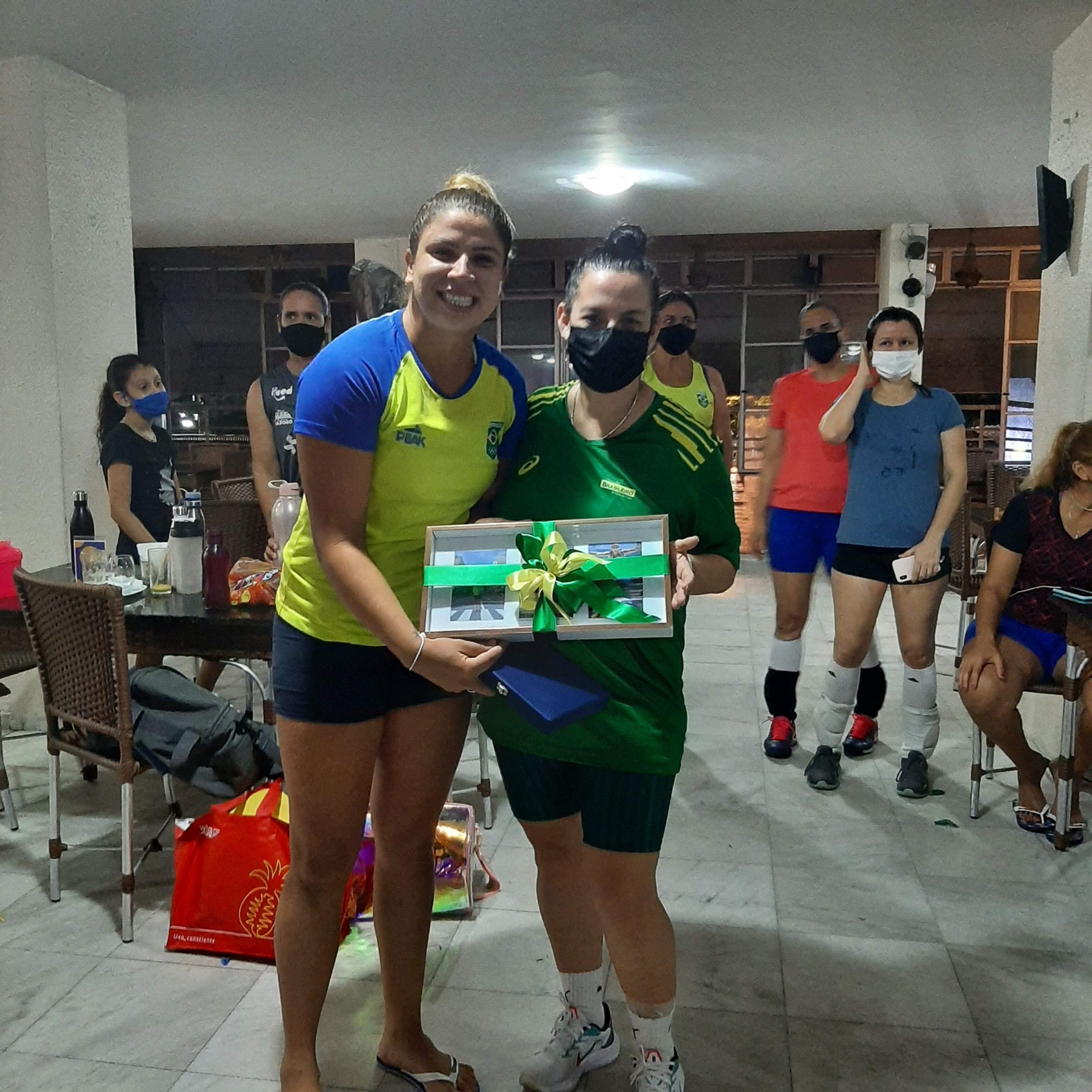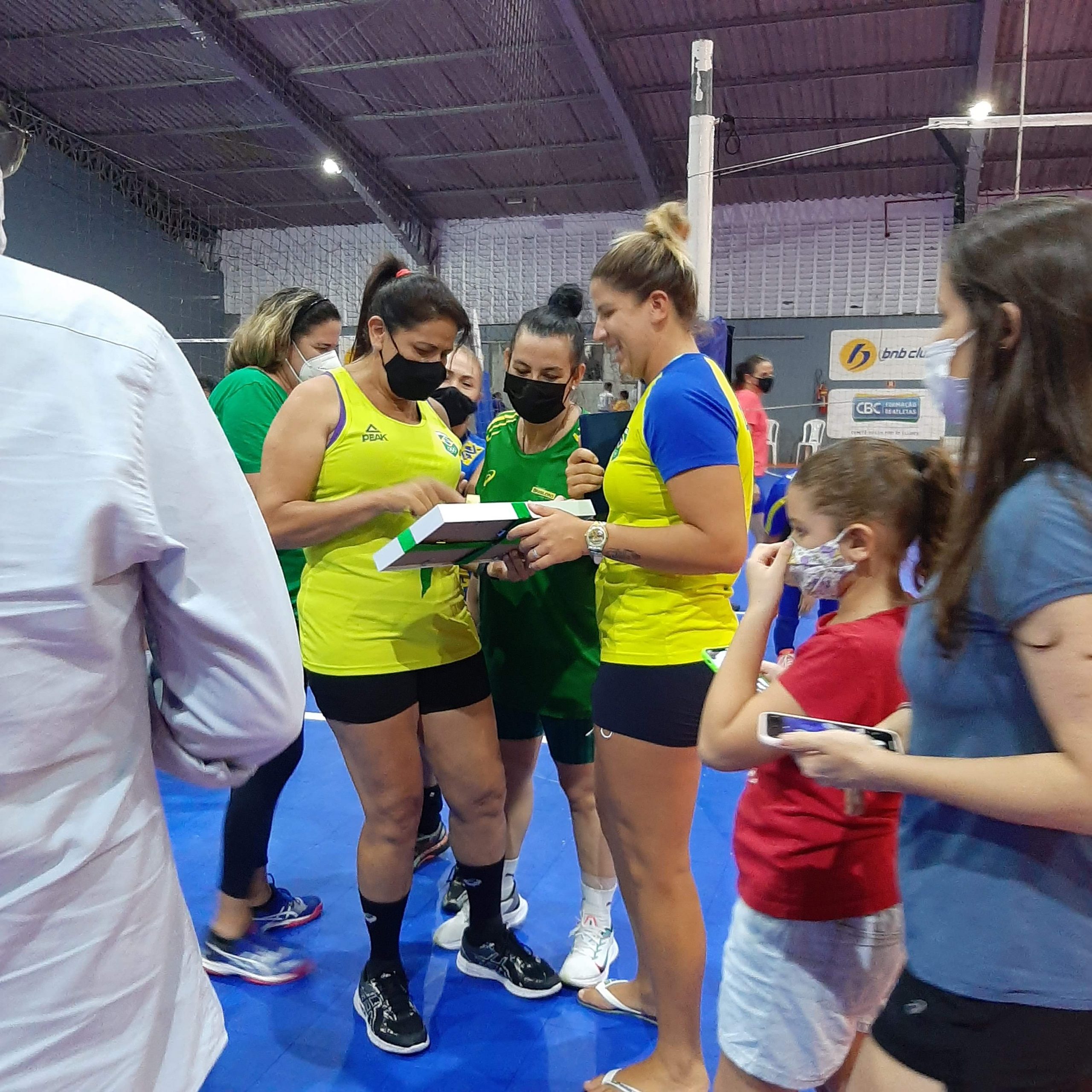 A atleta, que fez parceria com Ana Patrícia, conquistando o 5º lugar na competição, visitou a turma de Voleibol Master, treinou com a turma e foi ovacionada pelas colegas e pela equipe do clube.