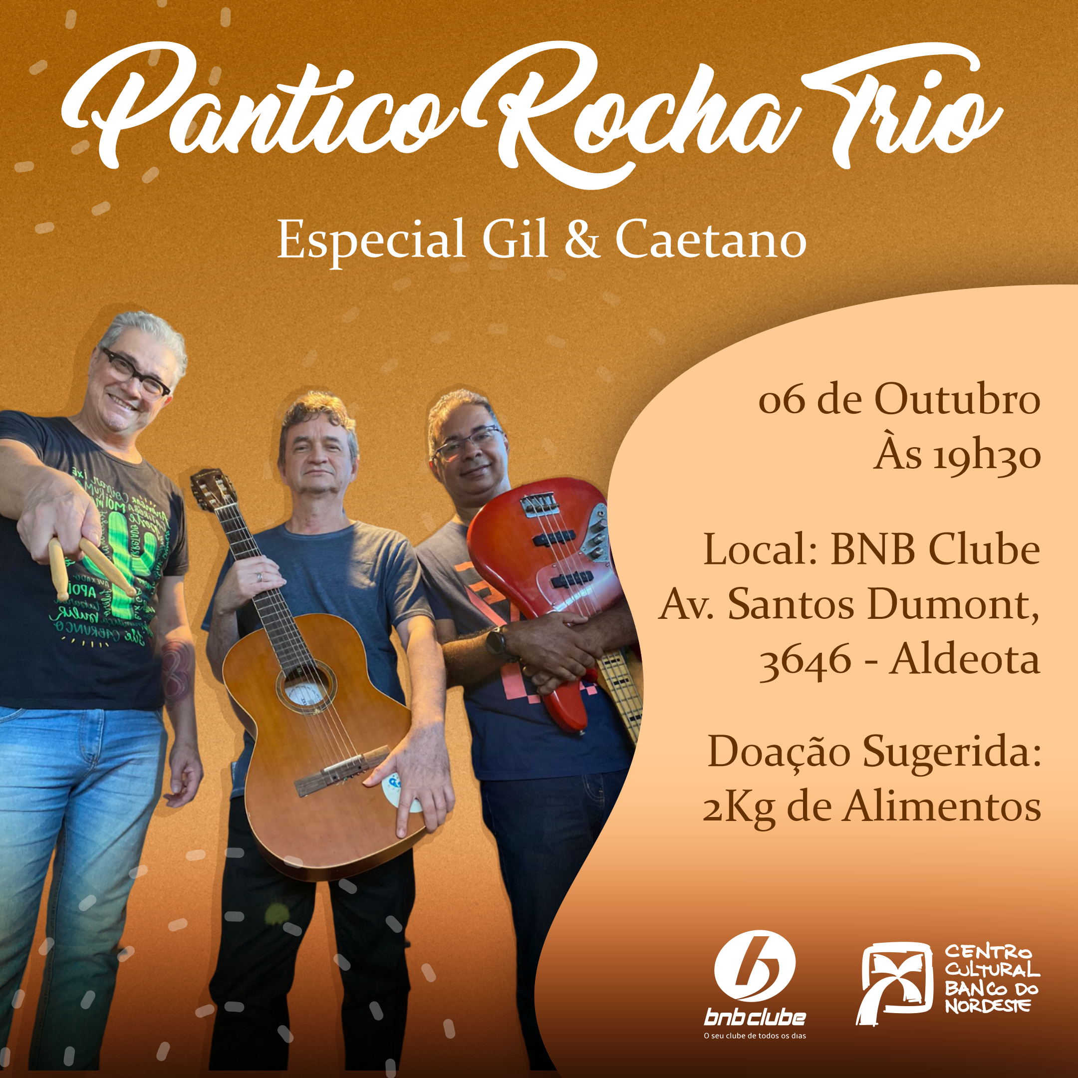 No dia 06 de outubro, o Pantico Rocha Trio, formado pelo instrumentista, cantor e compositor, Pantico Rocha, que é responsável pela bateria e voz e está acompanhado dos seus parceiros Nélio Rocha, no baixo, e Alfredo Pessoa no violão, vão apresentar o especial Gil e Caetano.