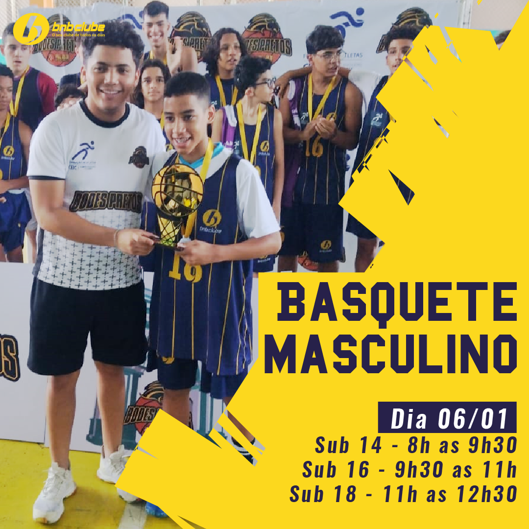 Já para a equipe de basquete masculino, a peneira será realizada nos dias 05 e 06 de janeiro de 2024 e convidamos os atletas das categorias Sub 14, Sub 16 e Sub 18.