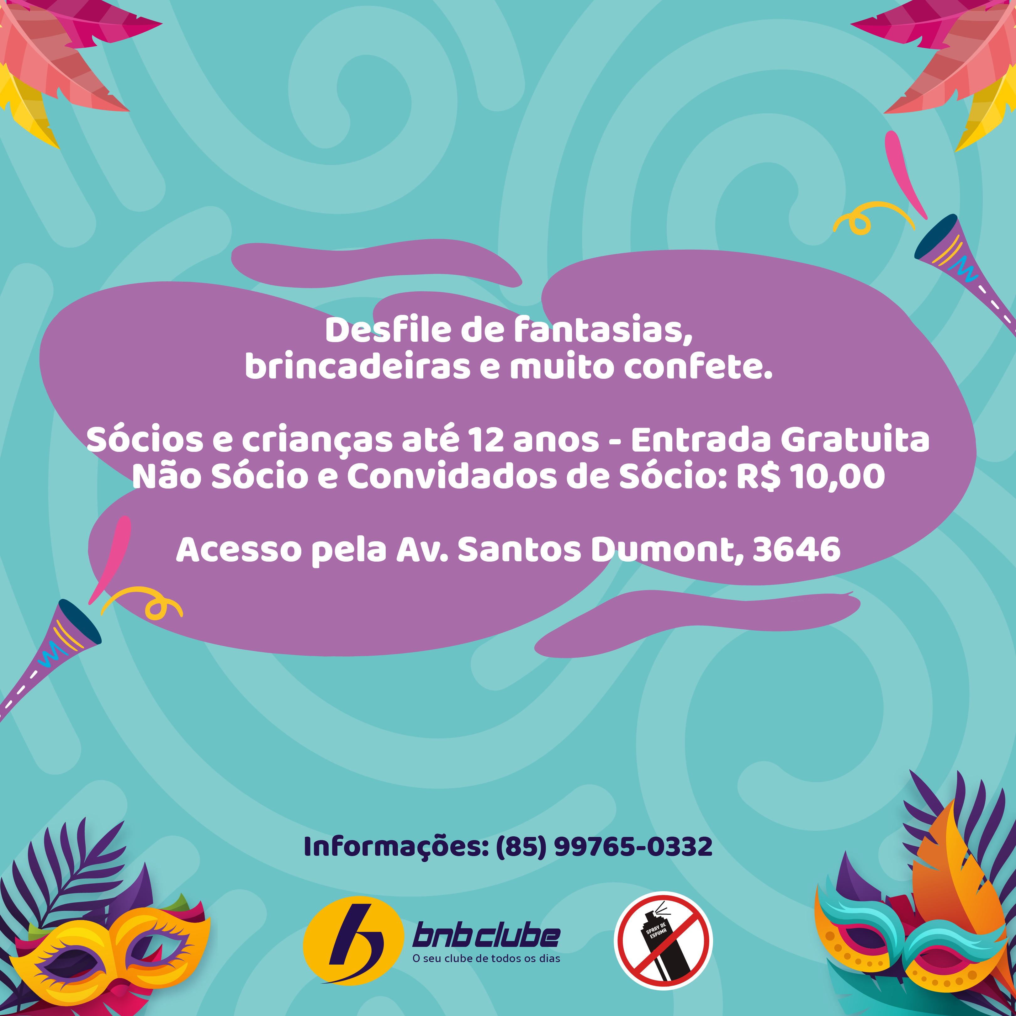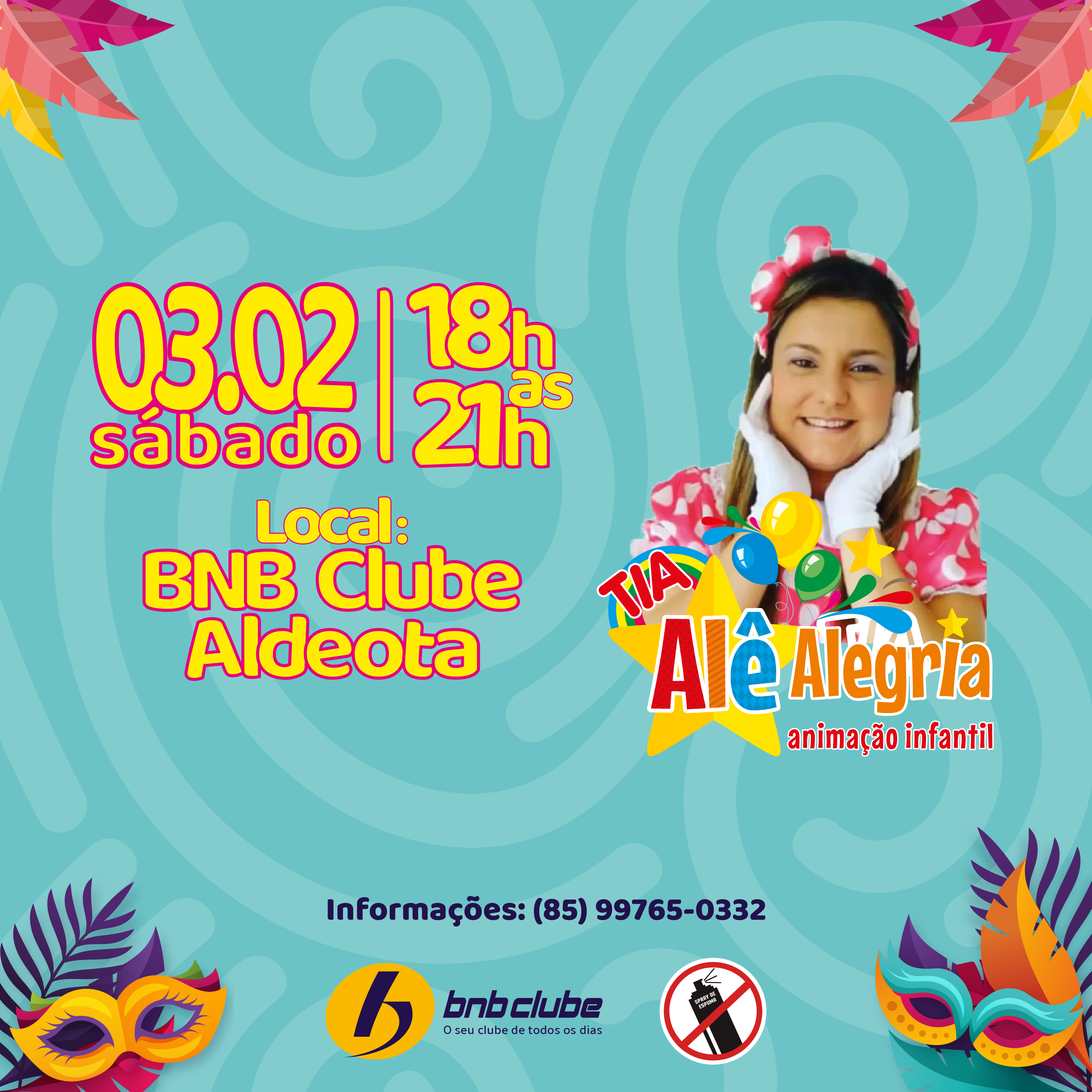 Início BNB Clube Carnaval Infantil BNB Clube BNB ClubeEventosSocial Carnaval Infantil BNB Clube Por Brenda Bezerra Lima - 24 de janeiro de 2024 959 0 FacebookTwitterPinterestWhatsApp Chegou a vez dos pequeninos curtirem o Carnaval do BNB Clube! No dia 03.02, a partir das 18h, a Tia Alê Alegria animará a criançada com muita folia. Estamos te esperando para muita diversão! ARTIGOS RELACIONADOSMais do autor BNB Clube BNB Clube participa do Torneio Início do Judô Cearense 2026 com delegação de 14 atletas BNB Clube Verena Figueira e Thainara Oliveira conquistam medalha de prata no Circuito Brasileiro de Vôlei de Praia BNB Clube BNB Clube segue na disputa da 1ª etapa do Circuito Brasileiro de Vôlei de Praia 2026 Mais Populares BNB Clube conquista 25 medalhas no Torneio N/NE de Natação de... 2 de dezembro de 2020 BNB Clube participa do Torneio de Abertura de Natação 2020 –... 11 de março de 2020 BNB Clube conquista vice-liderança nacional no CBI Sub-21 de Vôlei de... 29 de outubro de 2025 Recentes Judoca do BNB Clube conquista ouro na Copa Bahia Open 2026 Cassia Monteiro - 11 de fevereiro de 2026 0 BNB Clube participa do Torneio Início do Judô Cearense 2026 com delegação de 14... Cassia Monteiro - 11 de fevereiro de 2026 0 Verena Figueira e Thainara Oliveira conquistam medalha de prata no Circuito Brasileiro de Vôlei... Cassia Monteiro - 9 de fevereiro de 2026 0 BNB Clube segue na disputa da 1ª etapa do Circuito Brasileiro de Vôlei de... Cassia Monteiro - 6 de fevereiro de 2026 0 BNB Clube inaugura Arena Banco do Nordeste e fortalece parceria para o esporte Cassia Monteiro - 27 de janeiro de 2026 0