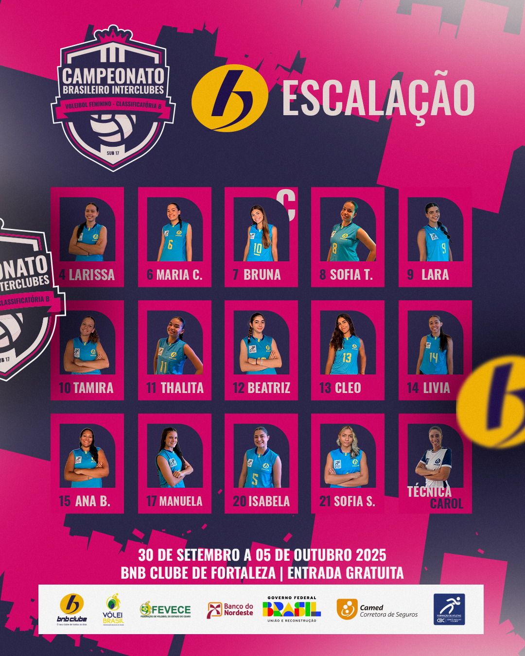 Confira as atletas que vão representar o BNB Clube no Campeonato Brasileiro Interclubes (CBI) Sub-17 de Vôlei Feminino! ✨🏐